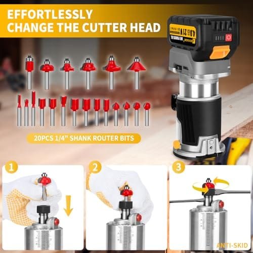 We spent several weekends testing the JEXUGK Brushless Cordless Wood Router — the 21V compact trimmer/palm router kit that ships with 2x 4.0Ah batteries, a 6-speed controller, and 20PCS 1/4″ bits. In this review we’ll walk through what stood out during real shop work: build, power, battery life, ergonomics, included accessories, and where this tool fits in your woodworking toolkit.