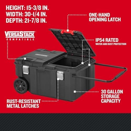 Tackle any job with the CRAFTSMAN VERSASTACK 30-Gallon Rolling Tool Chest. Features quick-access storage, durable construction, and smooth mobility for workshop or jobsite. Keeps your tools organized and within reach when you need them most.