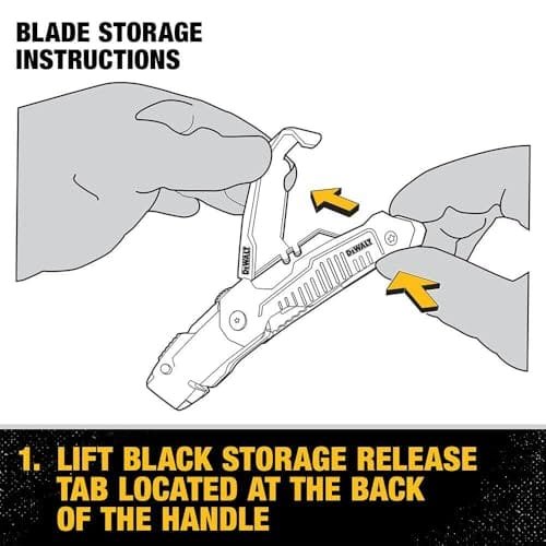 DeWalt DWHT10035L 2-1/2″ folding retractable utility knife – rugged metal body for durability, compact pocket-ready design, secure blade lock and easy folding for safe storage. Tough, precise cutting for everyday and jobsite tasks.