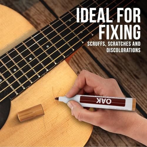 RamPro 17-piece touch-up kit: 8 felt-tip markers + 8 wax crayons in Black, Maple, Oak, Cherry, Walnut, Mahogany. Hide scratches and renew furniture & wood floors fast — precise, blendable, long-lasting repairs.