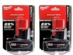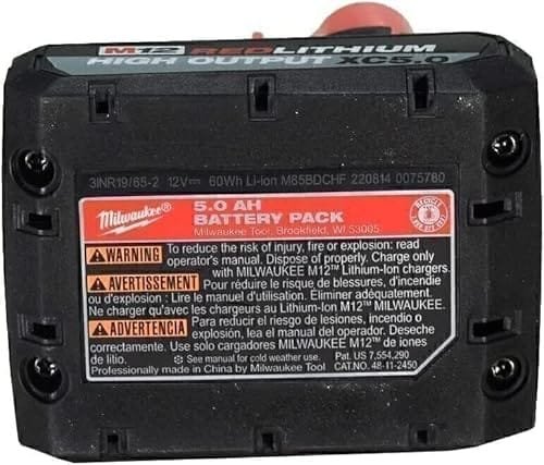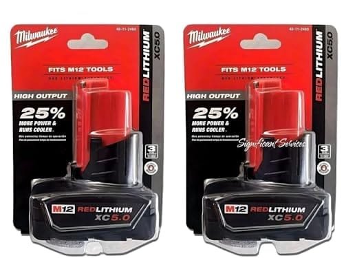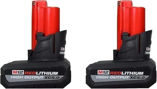 Milwaukee 48-11-2450 12V High Output 5Ah Lithium-Ion Battery 2-pack — delivers compact, fade-free power and extended runtime for M12 tools. Durable REDLITHIUM cells, fast charging compatibility and long life.
