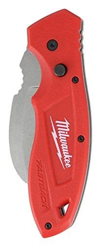 Milwaukee Fastback Hawk Bill Folding Knife — rugged metal construction and hawkbill blade for precise, controlled cuts. Compact fold-up design with belt clip and lanyard hole for secure, easy carry.