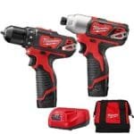 Milwaukee M12 Drill/Impact Combo Kit (2494-22) — compact 12V drill and impact driver with two M12 REDLITHIUM batteries and charger. Lightweight, durable power for tight spaces, fast fastening and reliable runtime for pros and DIYers.