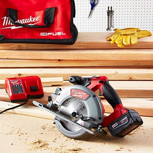 Milwaukee 2730-21 M18 FUEL 6-1/2″ Circular Saw Kit — POWERSTATE brushless motor and REDLITHIUM battery deliver cord-free torque, longer runtime, lightweight balance and fast, precise ripping and bevel cuts.
