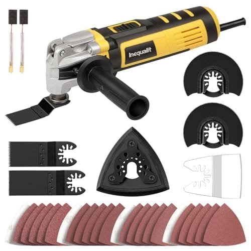 We spent several days testing the Inequalit Oscillating Tool (3.5A, 6 variable speeds, 4° oscillation angle) across common renovation and repair tasks to see if it lives up to the claims. This multi-tool kit ships with a 30-piece accessory set and a quick release system — and after using it for trimming door jambs, cutting plywood, removing grout, and precision sanding, we can confidently say this tool punches well above its price point.