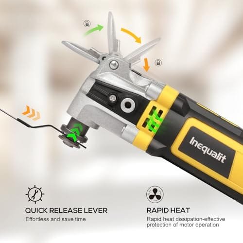 Oscillating multi-tools are one of the most versatile items in a homeowner’s or tradesperson’s kit. The Inequalit unit stood out to us before testing because of its balanced mix of power (3.5 amps), a fine 4° oscillation angle for cleaner cuts, and a quick release accessory system that promises tool-free blade changes. After hands-on use, those features made routine jobs faster and less fiddly.