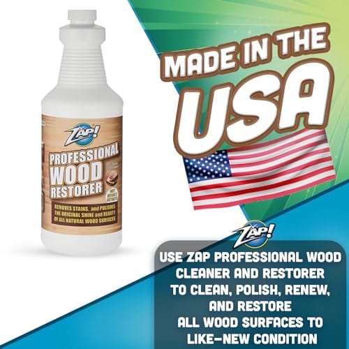 ZAP! Professional Wood Cleaner and Restorer cleans, polishes & restores wooden furniture, hardwood floors, cabinets and tables. Professional-strength, deep-action formula removes grime and revives natural luster. 32 oz.